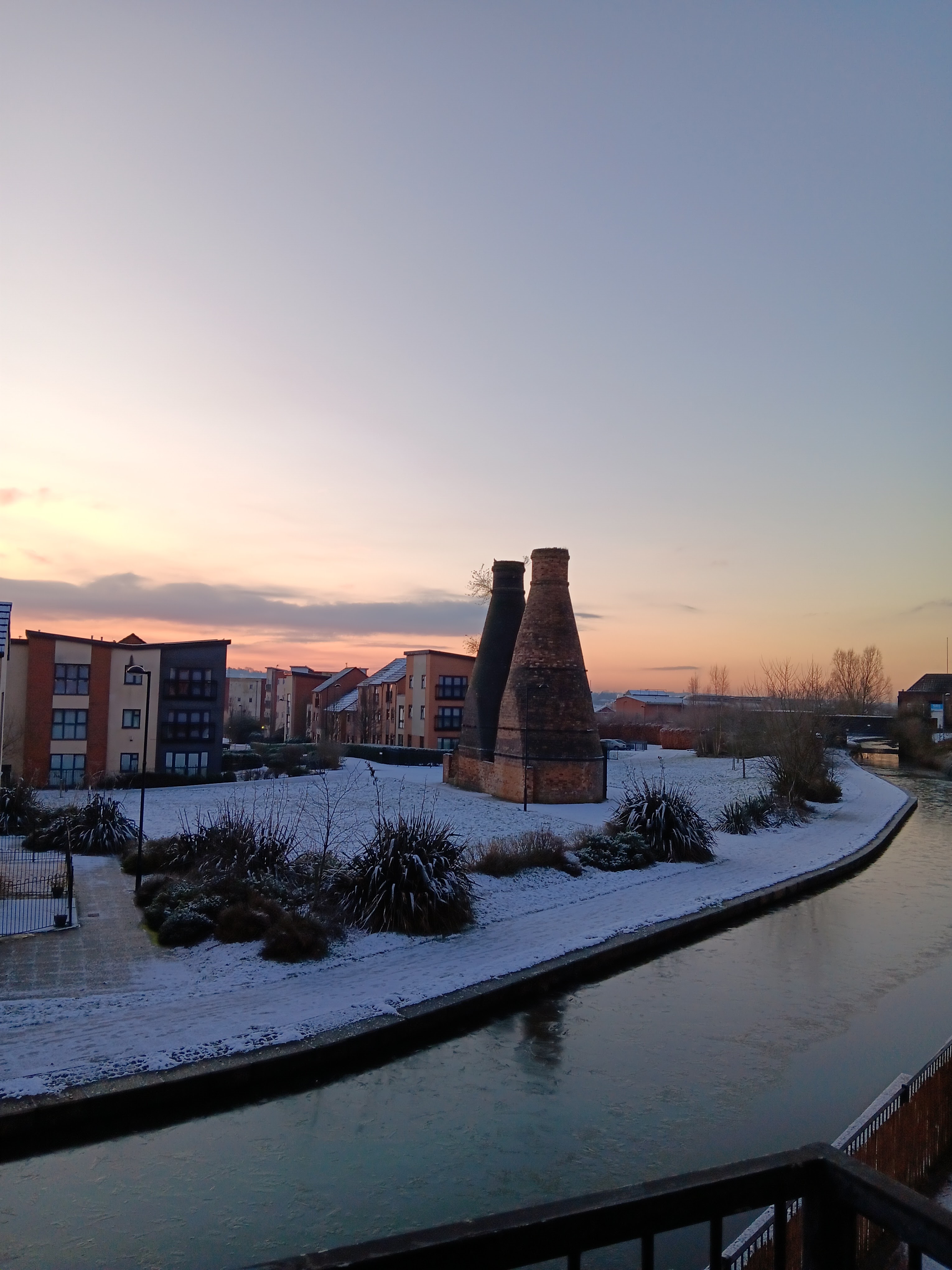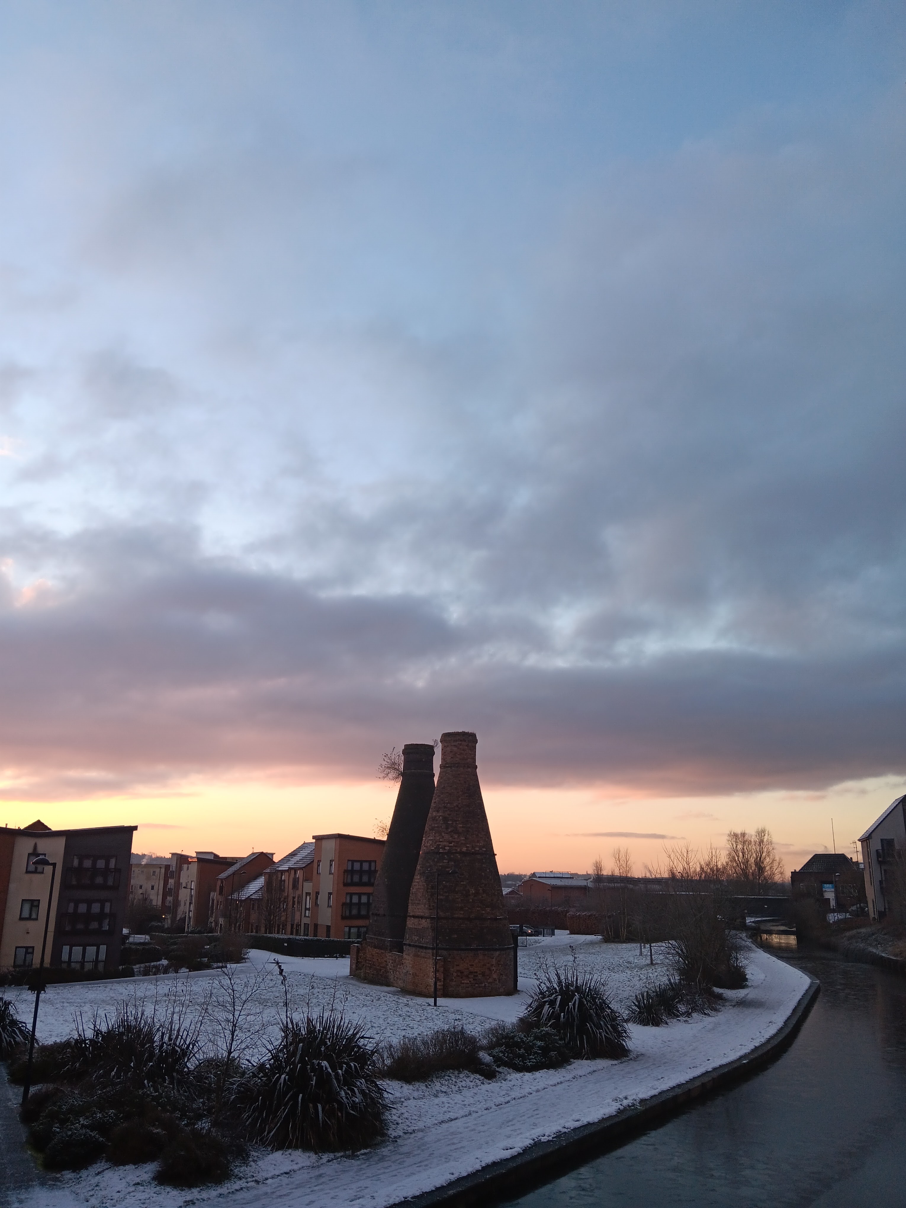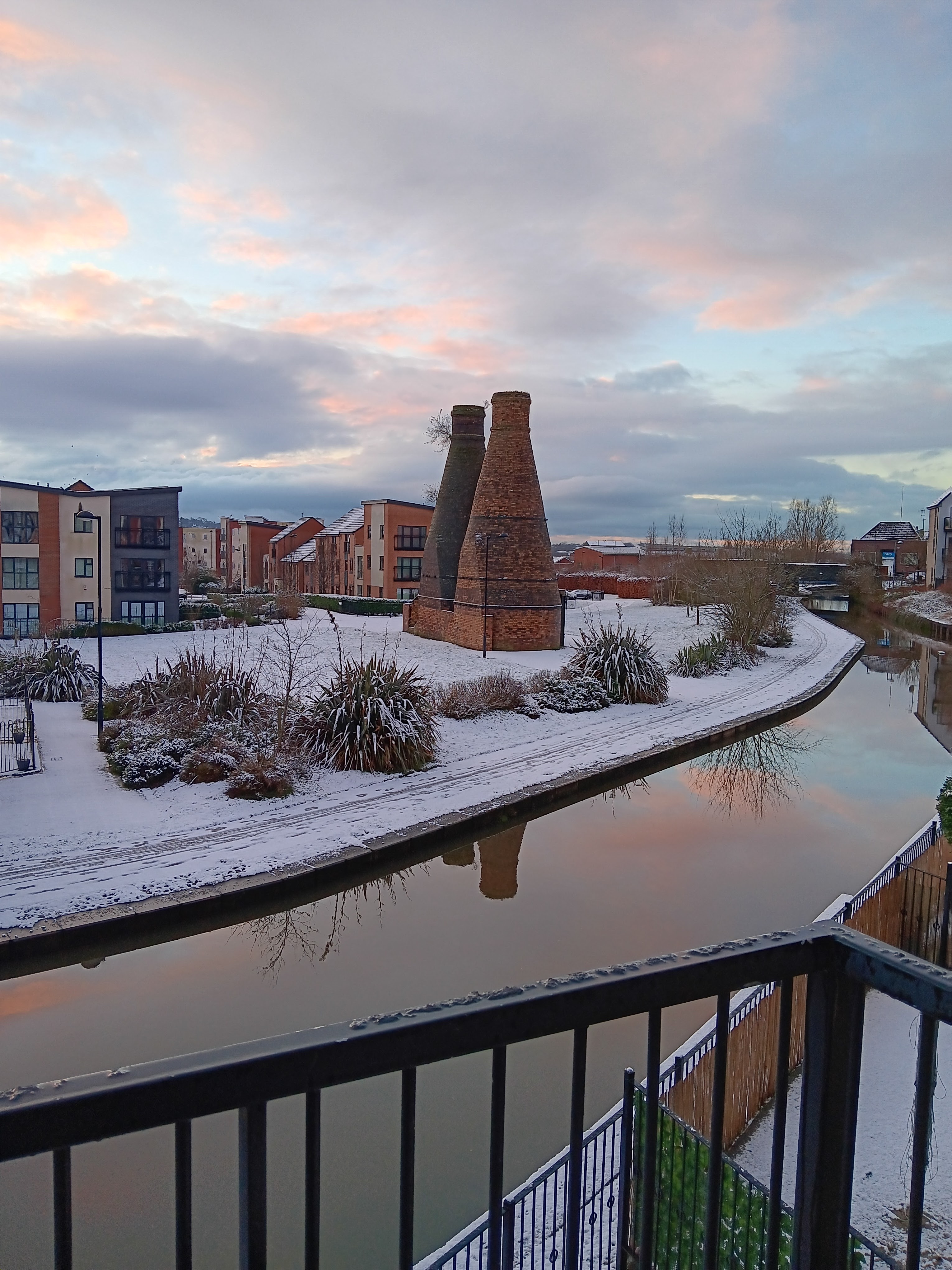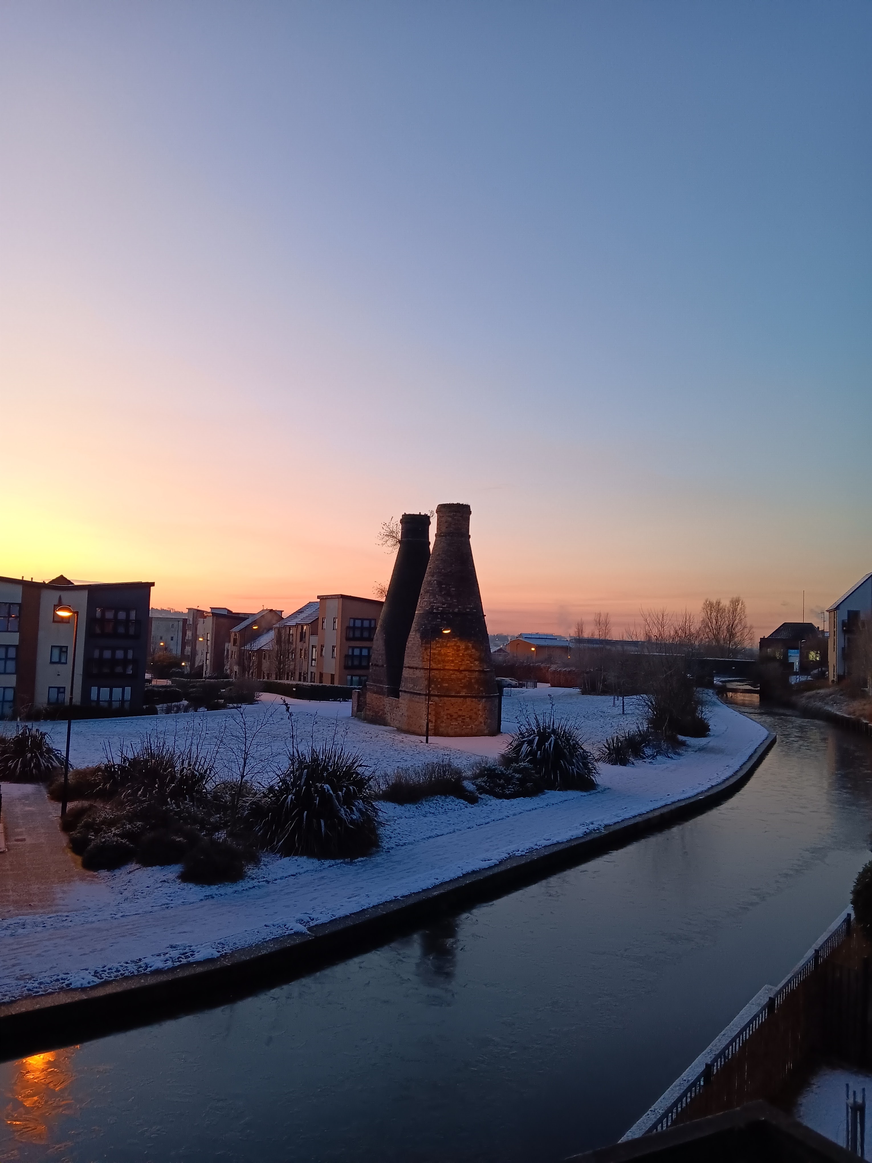 On Thursday when I woke up and checked the view, the canal had frozen over; a sure sign of just how cold it had been overnight. But winter means you don’t get have to get up really early to be able to watch the sunrise; so I sat with a cup of coffee to watch the darkness fade and light return, then changed my location and begun my work day.