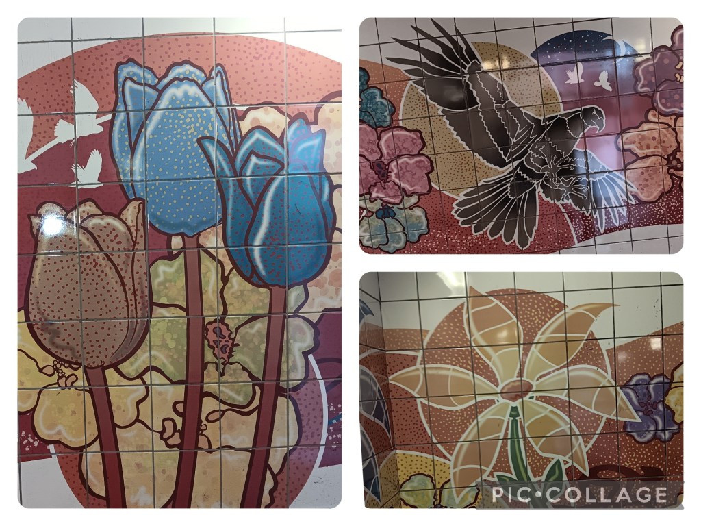 The feeling of optimism continued as I walked through an underpass on my way home – the bright colours and floral themes of the mural reminded me again that spring will come… I’m sure I’ve walked past them many times before, but today the light shone through.