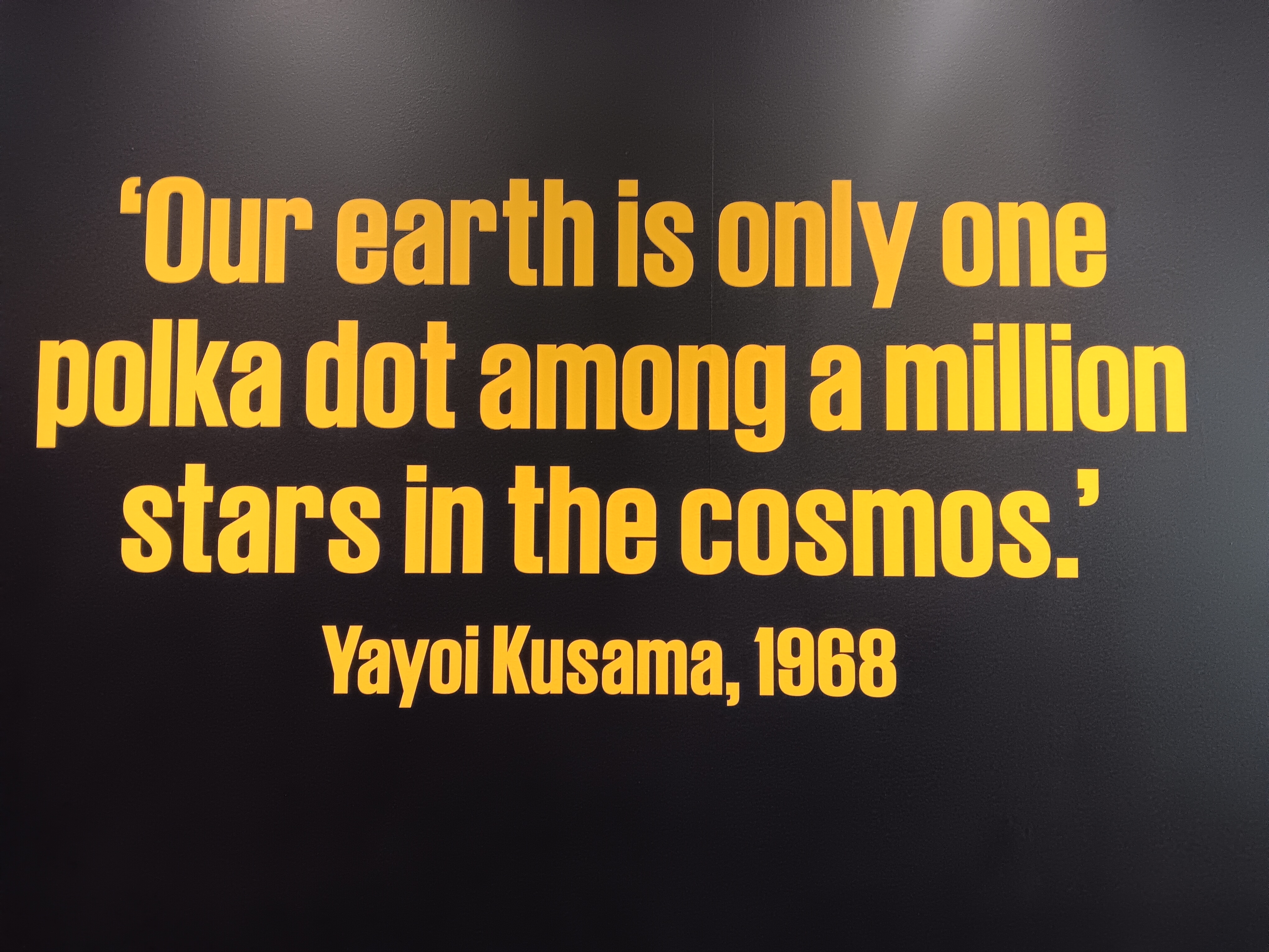 The life of an artist – Yayoi Kasuma has lived in the grounds of a mental health facility in Japan for much of the last 40 years. She has experienced depression and severe mental health challenges – but the process of creating her art is part of her daily life. I loved the final two quotes at the exit of the exhibition – she finds her motivation to create to bring joy, love, peace and hope to the world.