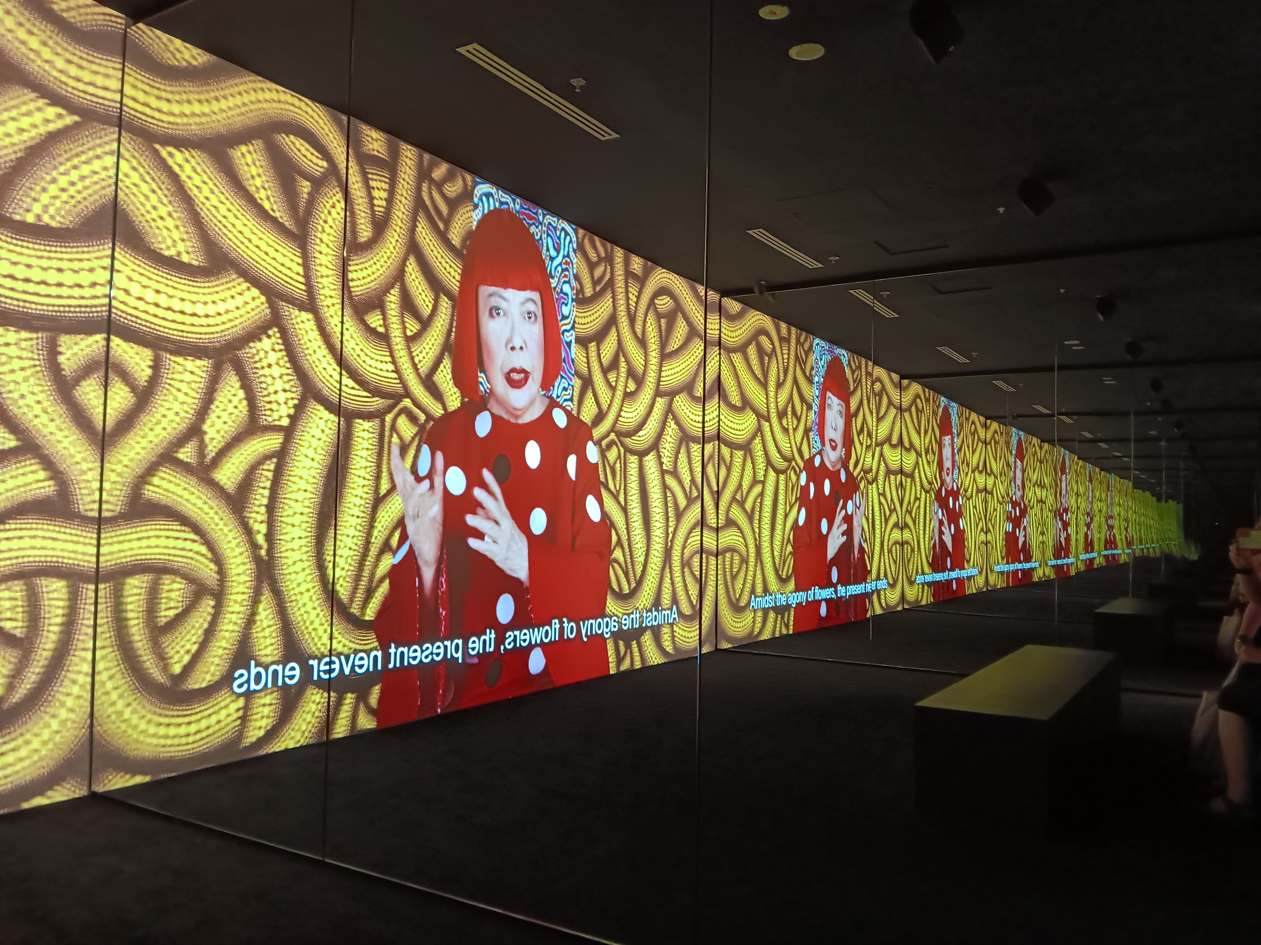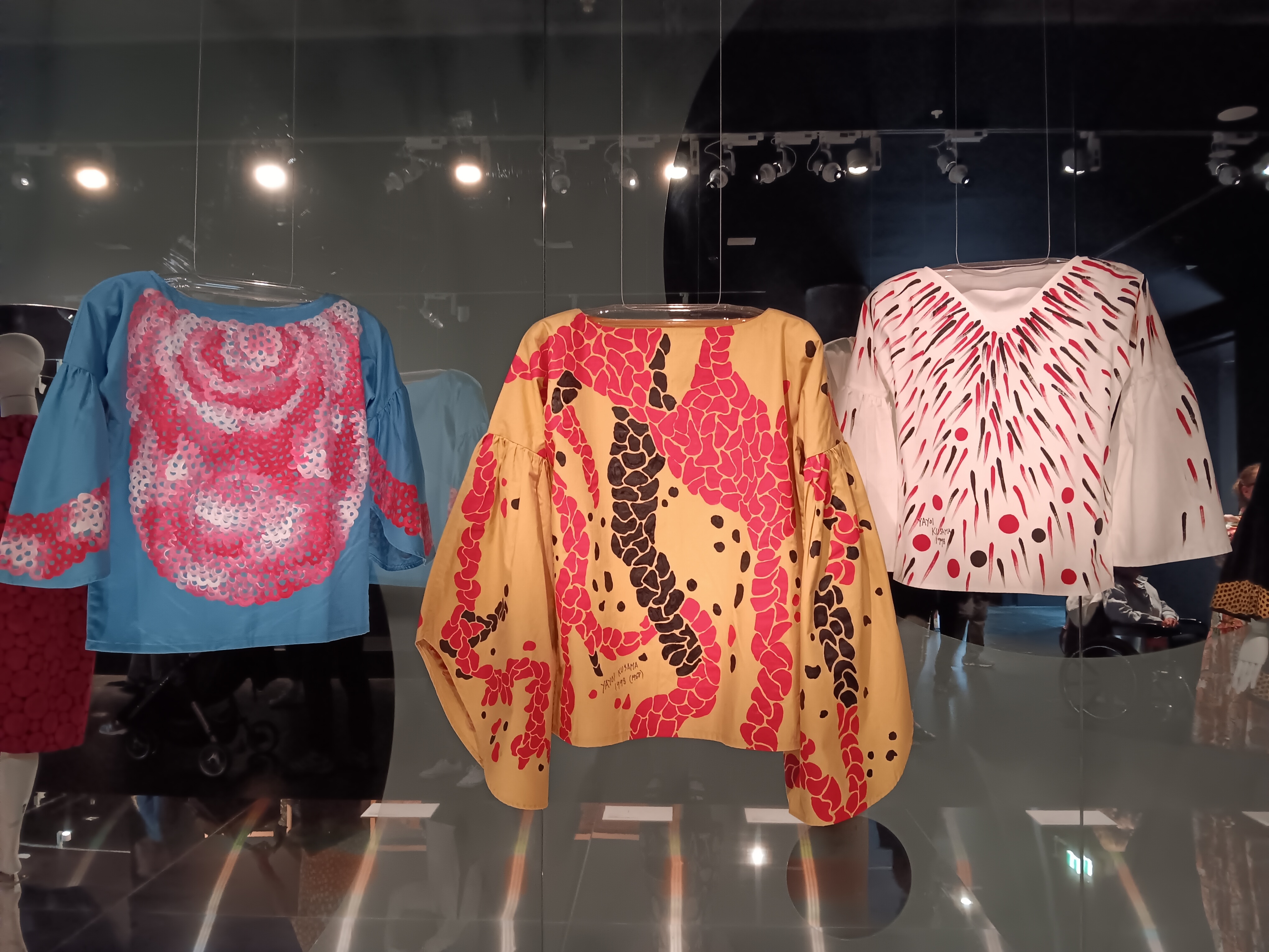 Yayoi’s artistic journey – the first part of the exhibition contained a snapshot of Yayoi’s early life then her journey from Japan to the USA – where she was influenced and was influenced by her life in New York. at the height of the pop art era. She created sculptures, paintings, fashion design, films and performance art. She tackled racism and misogyny, challenging the status quo with many of her creations. Themes of colour, reflections and polka dots came to the fore.