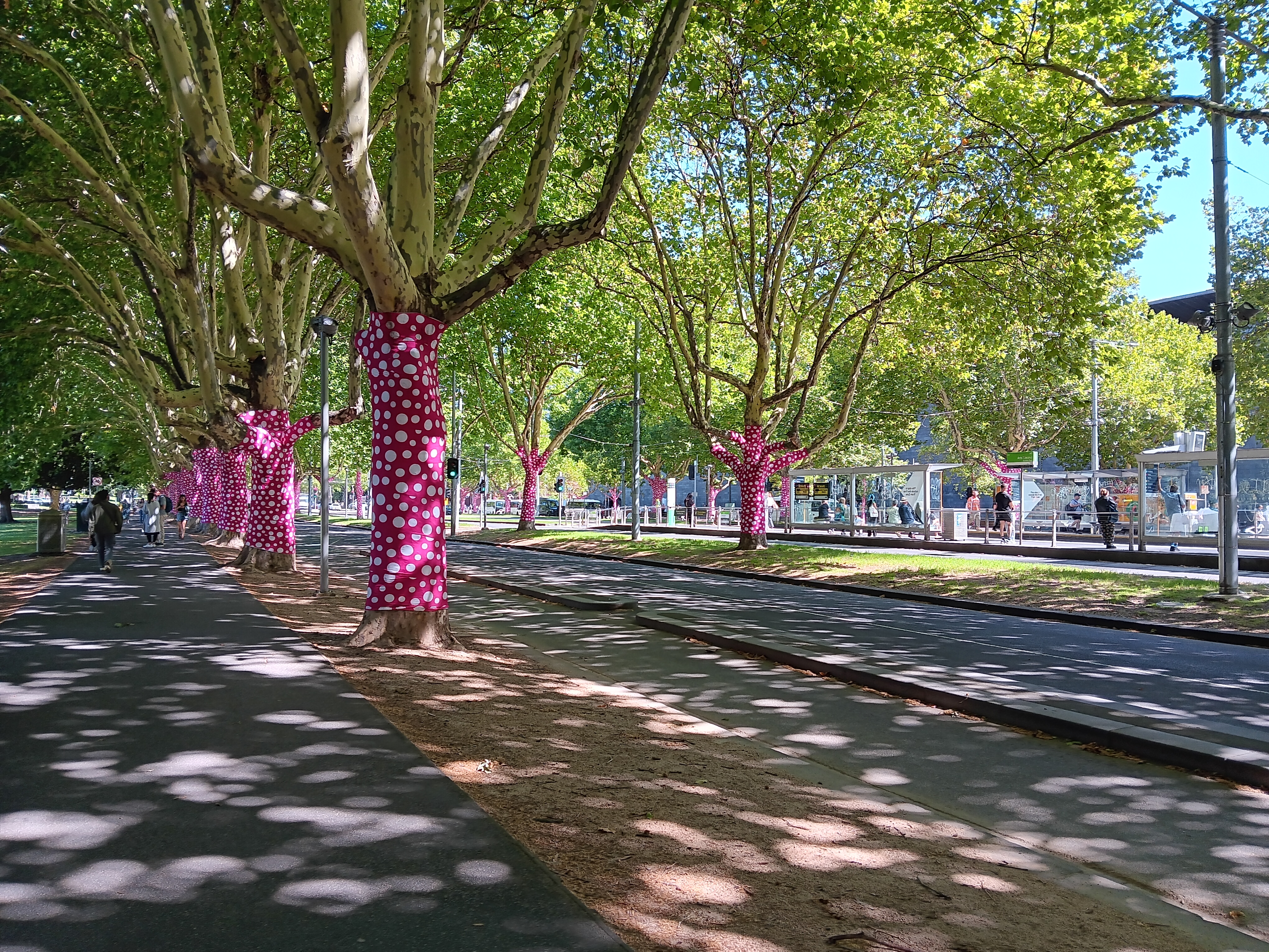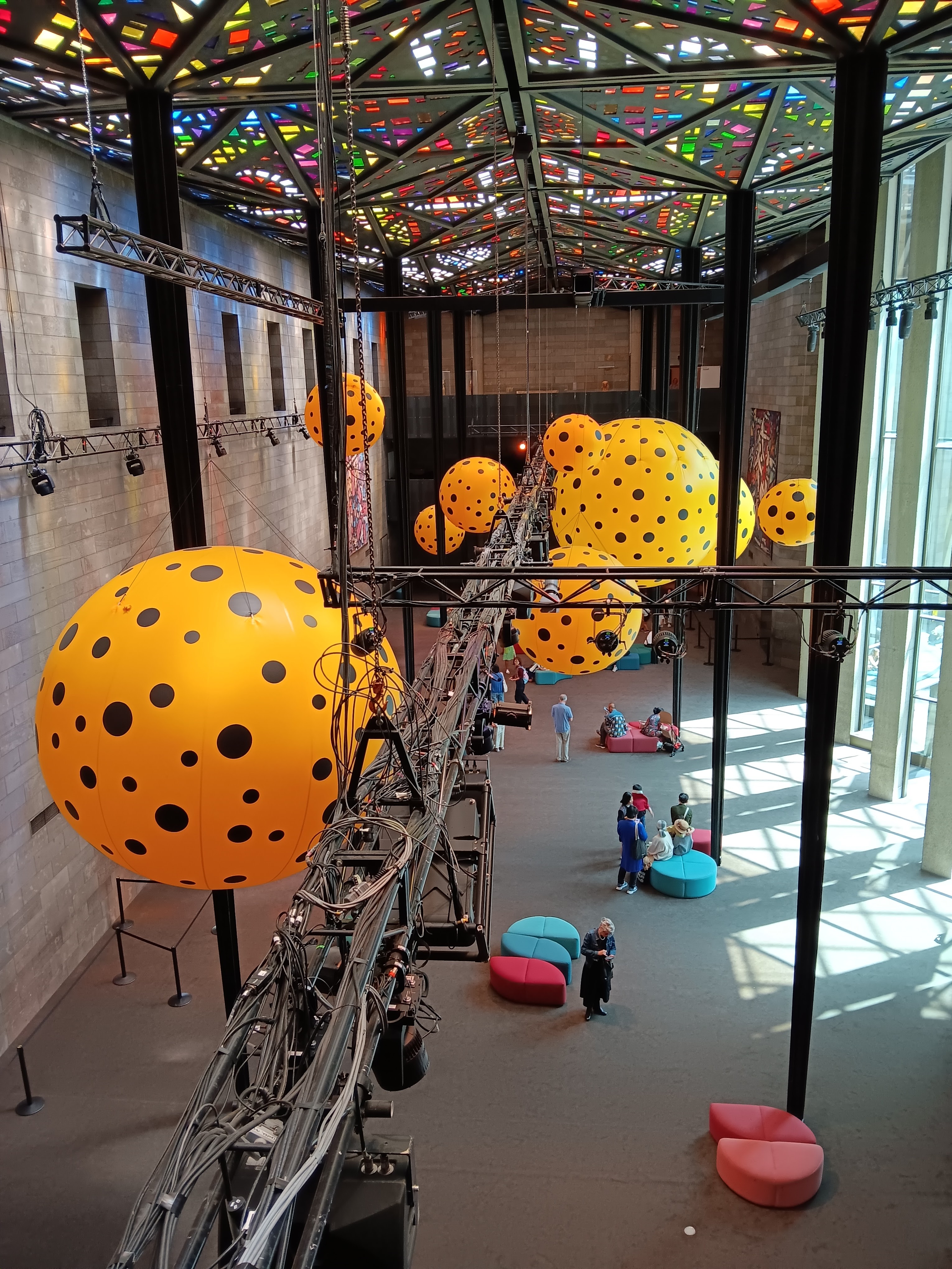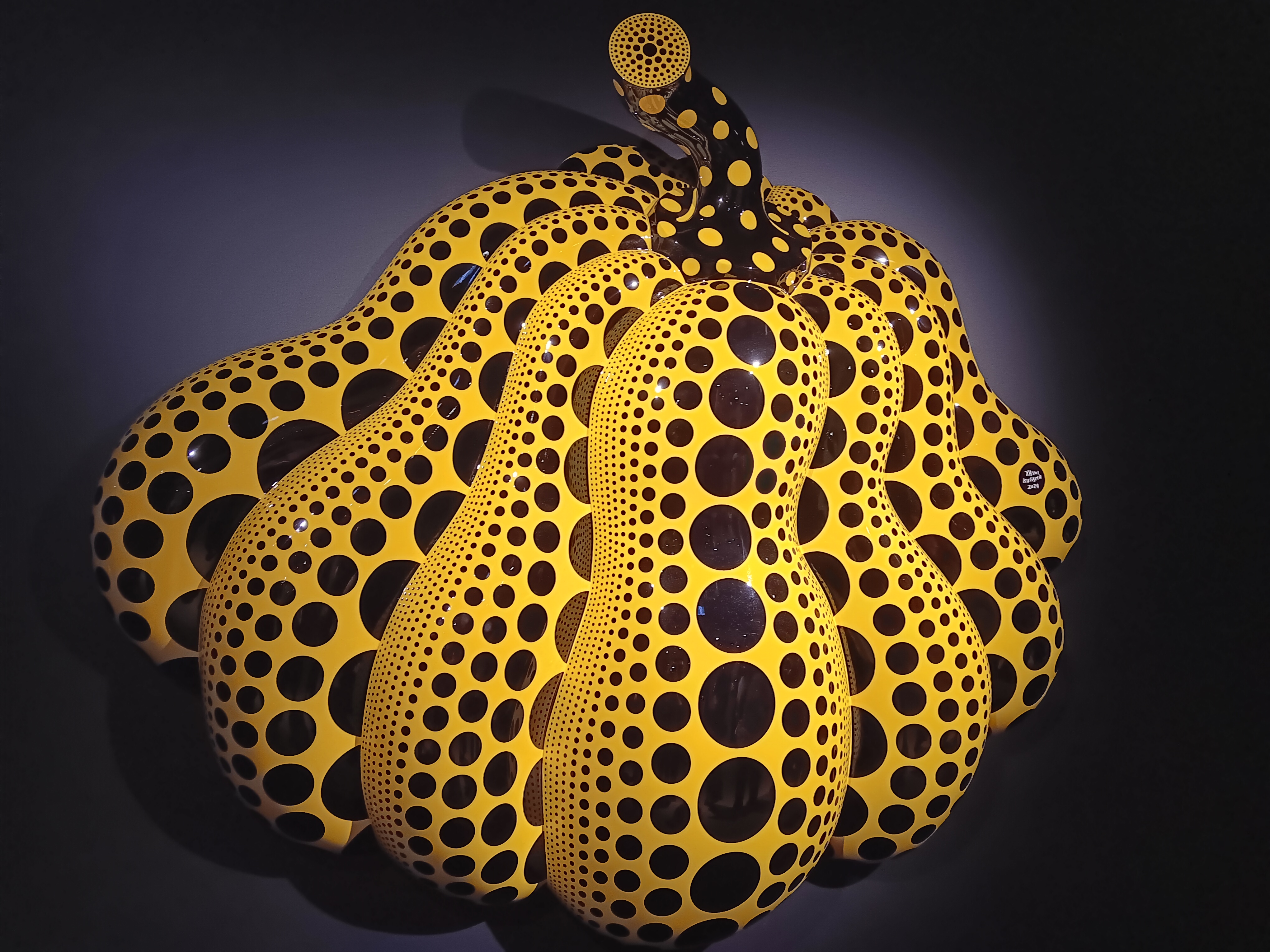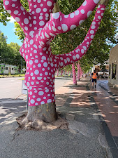 Polka dots everywhere – the trees around the NGV were wrapped in pink polka dots – adding an unusual twist to our walk to the gallery. Once inside, more polka dots and a giant pumpkin hinted at the colourful exhibits to come.