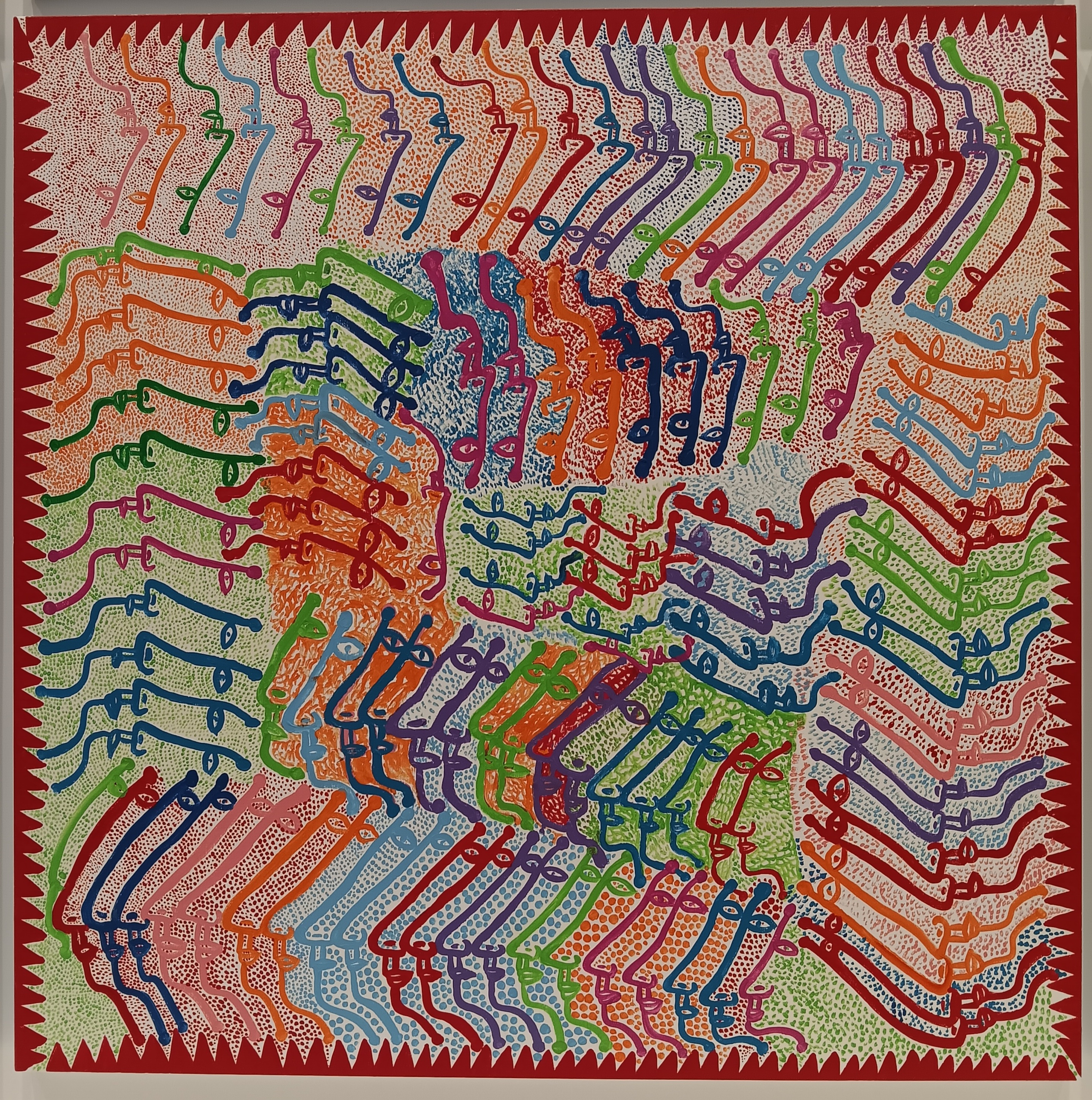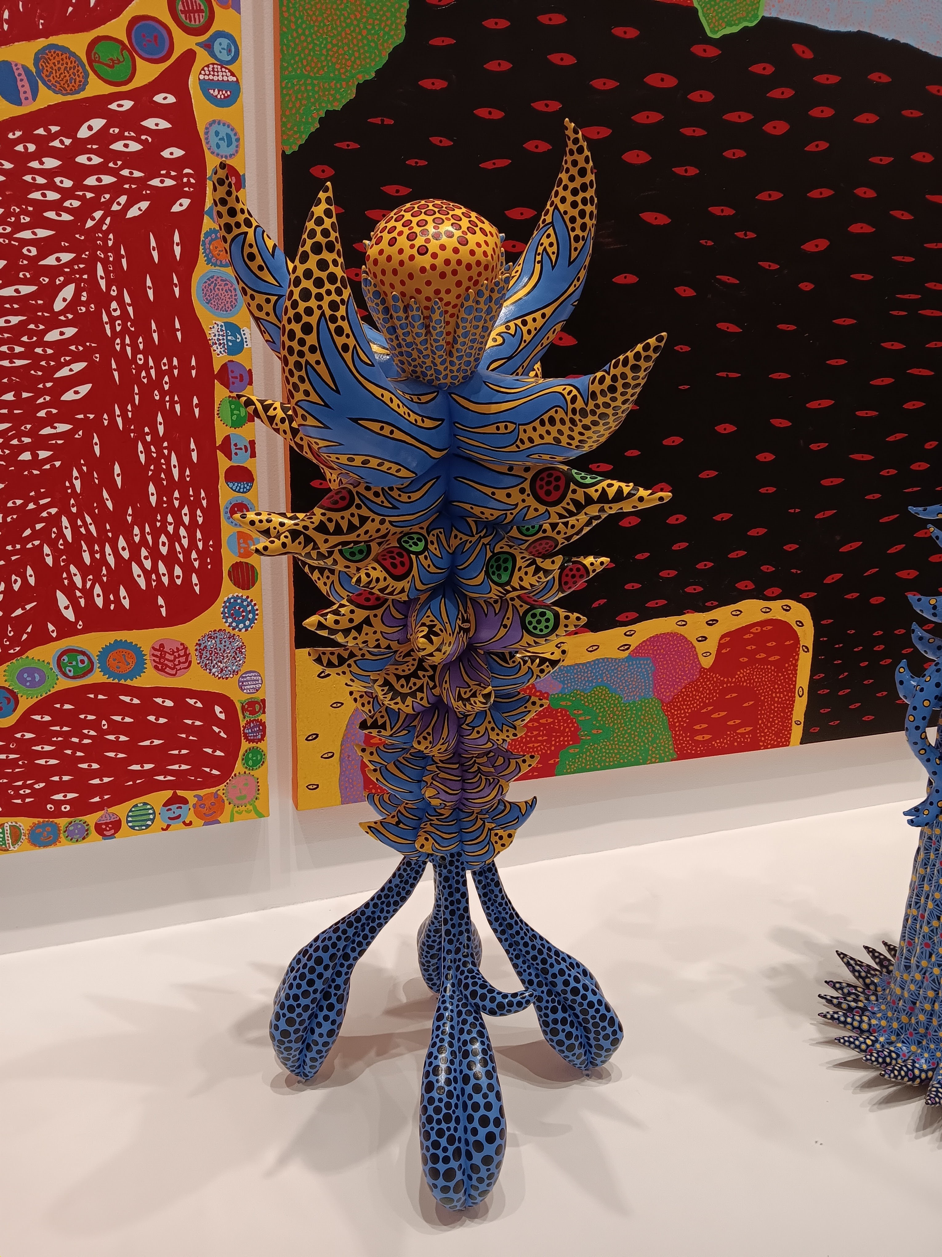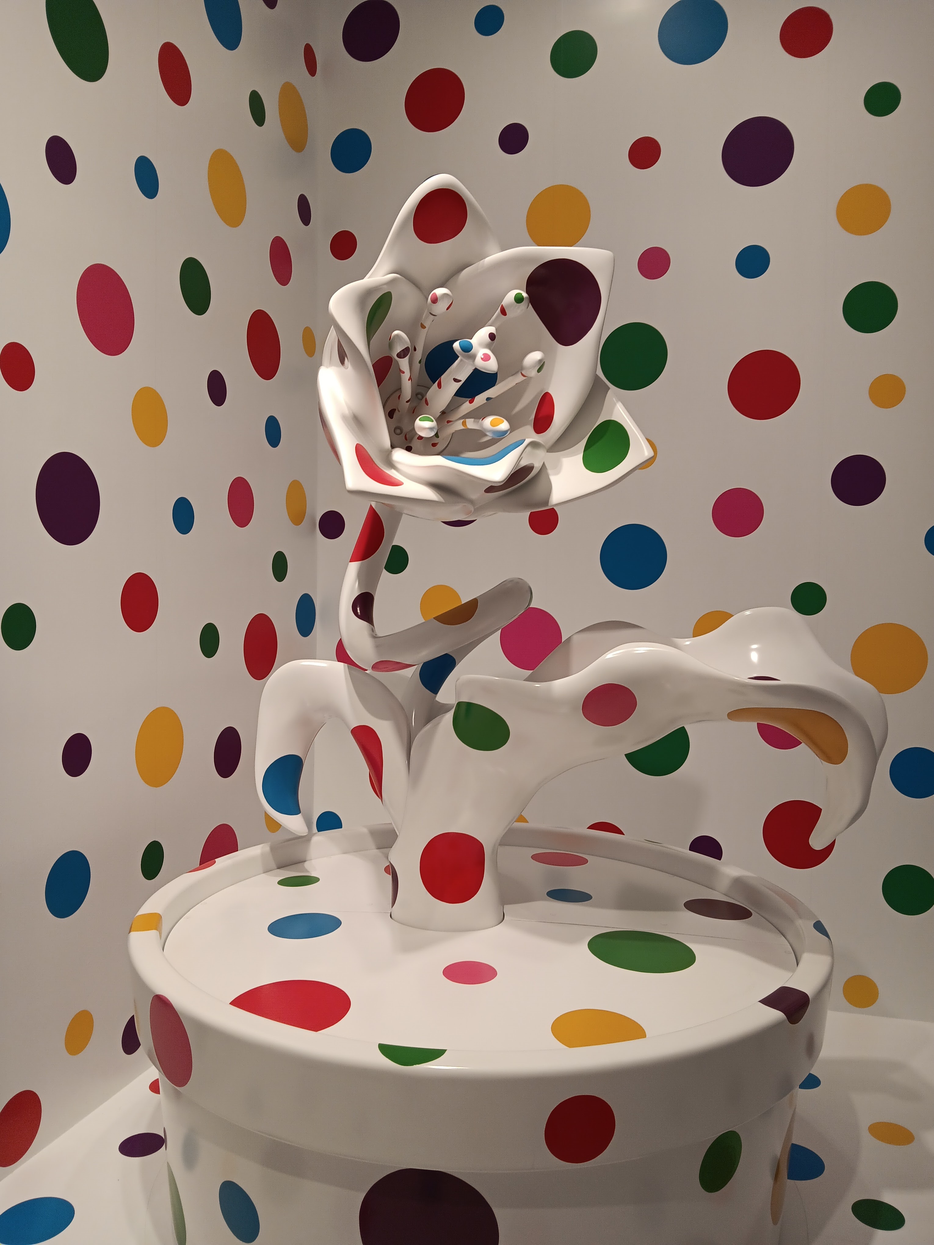 Big yellow pumpkins – pumpkins became a theme in Kasuma’s work from the very earliest days – a connection to her childhood in rural Japan. But there were also big yellow tentacles and lots of black polka dots in the exhibition too. Some of the strange floral sculptures gave off a Day of the Triffids vibe. Everything was wonderfully colourful.