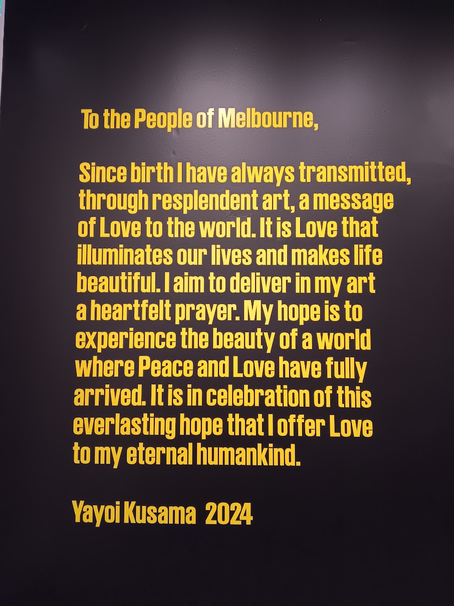 In 2023, we went to an exhibition called You, Me and the Balloons at the Aviva Studios in Manchester- it introduced us to the wonderful, colourful and eccentric artistic creations of Japanese artist Yayoi Kasuma. When we discovered that her latest show at the National Gallery of Victoria would coincide with our trip, well, we just had to go. It took a couple of attempts, with big queues and credit card challenges, but we made it.