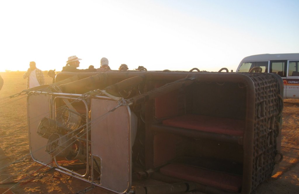 Then it was time to get the balloon ready and climb aboard, so we would be floating as the sun come up. It was pretty windy this morning, so it was not an entirely smooth take-off but soon we were floating above the outback, kangaroo spotting and watching the sunrise. Once up off the ground, it was a pretty smooth flight – you don’t feel how the strength of the wind once you are flying. Apart from the sound of the burners every now and then, it was incredibly peaceful and surprisingly quiet.