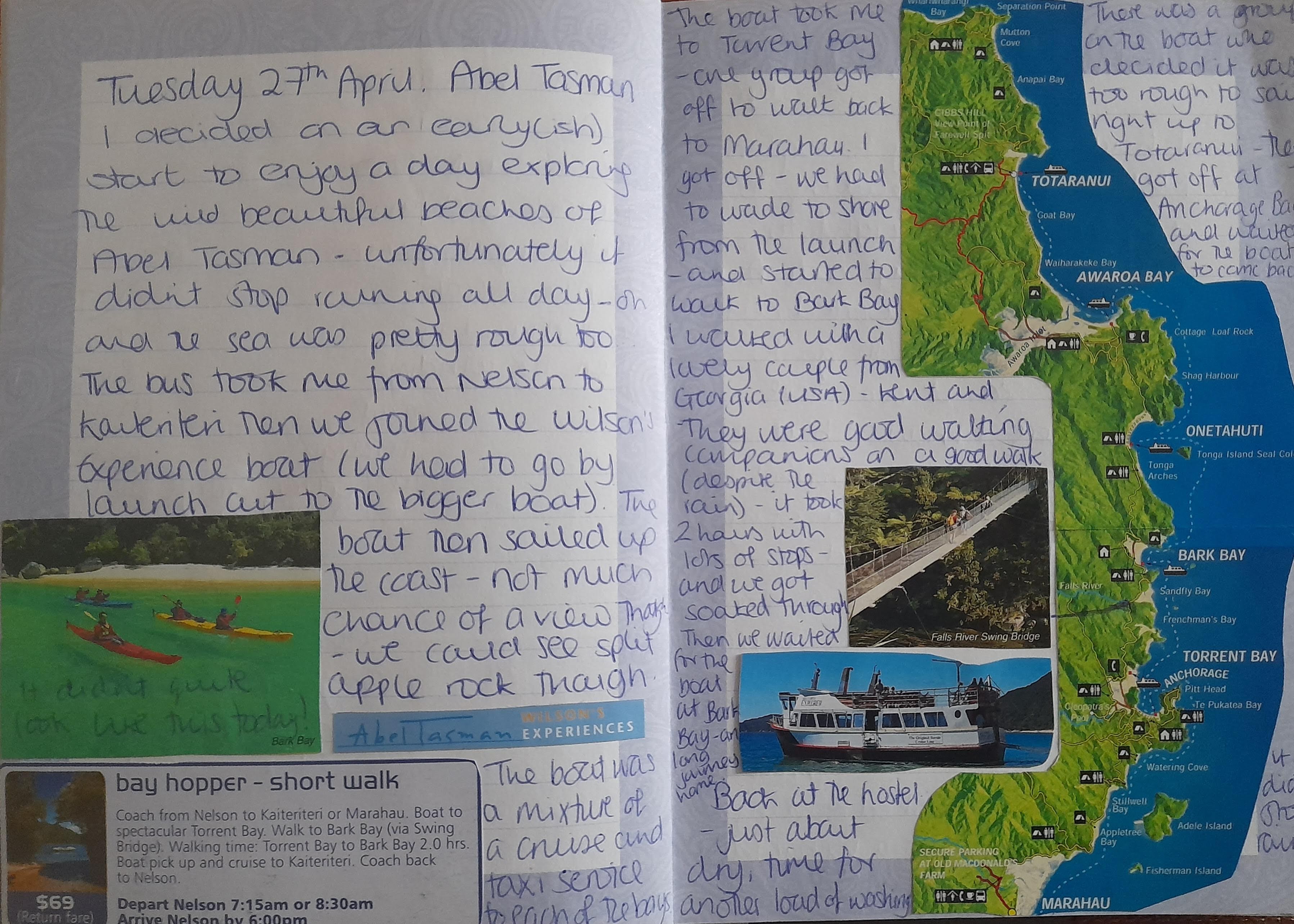 You don’t always get the picture postcard view, as my journal entry reflects, but I still had a great day exploring Abel Tasman.