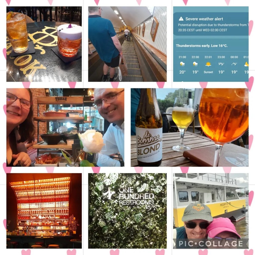 We did some exploring – crossing under the river using the foot tunnel and coming back again by boat. I people-watched by the river, enjoying a mid-afternoon Aperol spritz! We came across a fancy shopping centre with it’s “next-level” toilet experience – impossible to describe – to be seen to be believed.