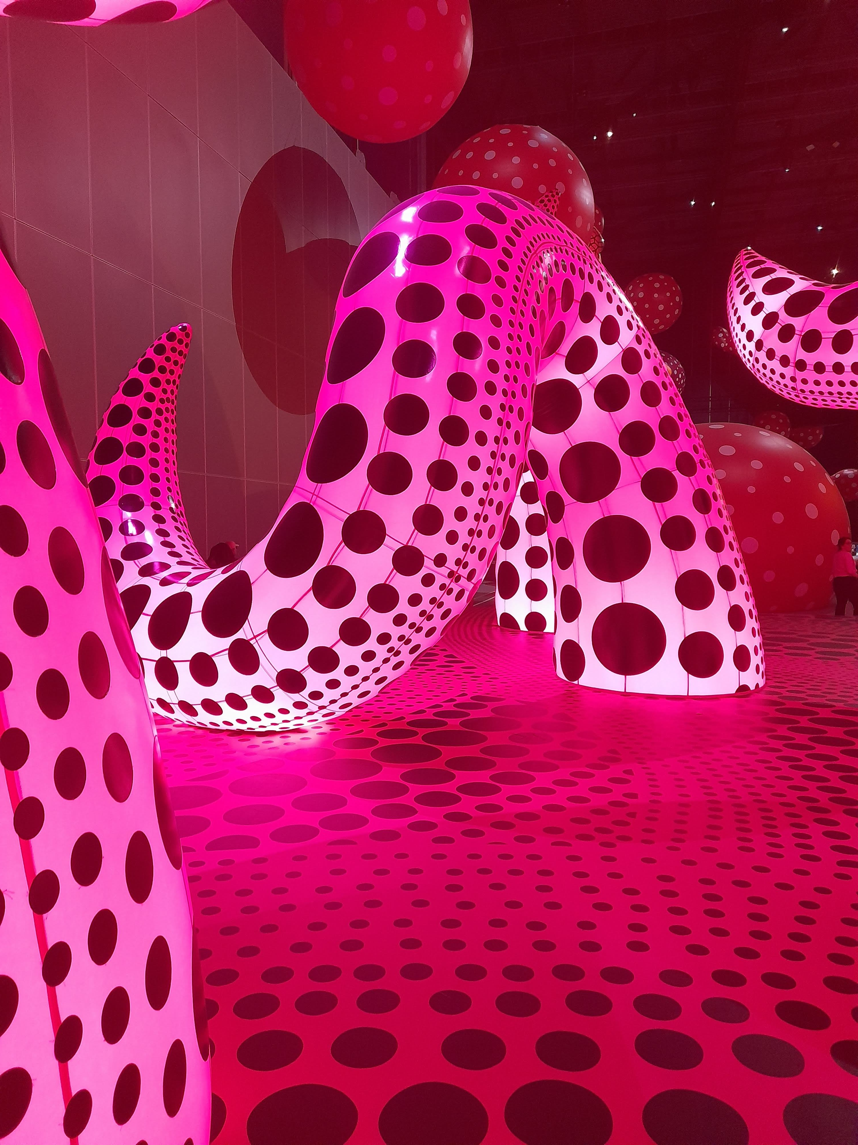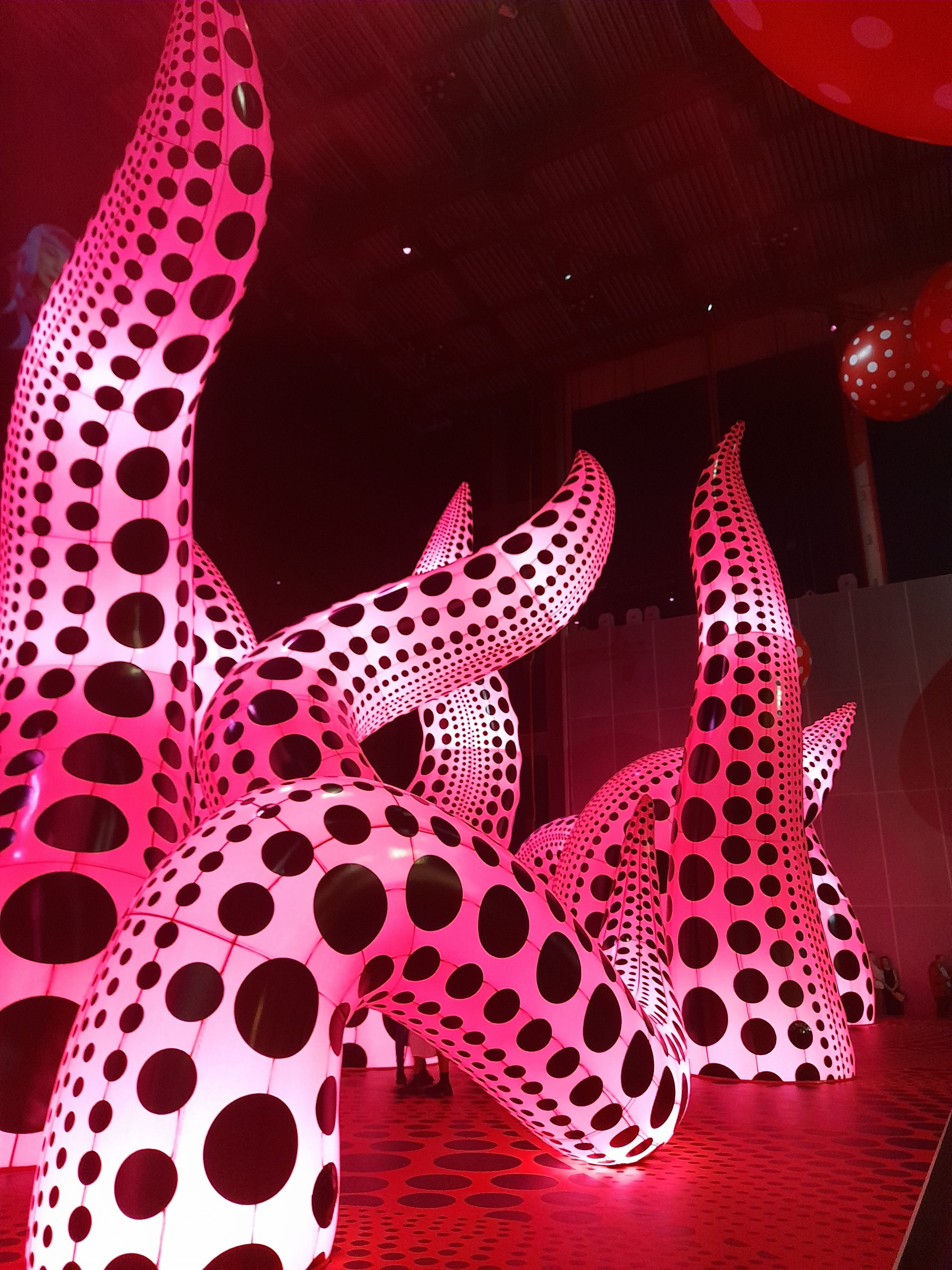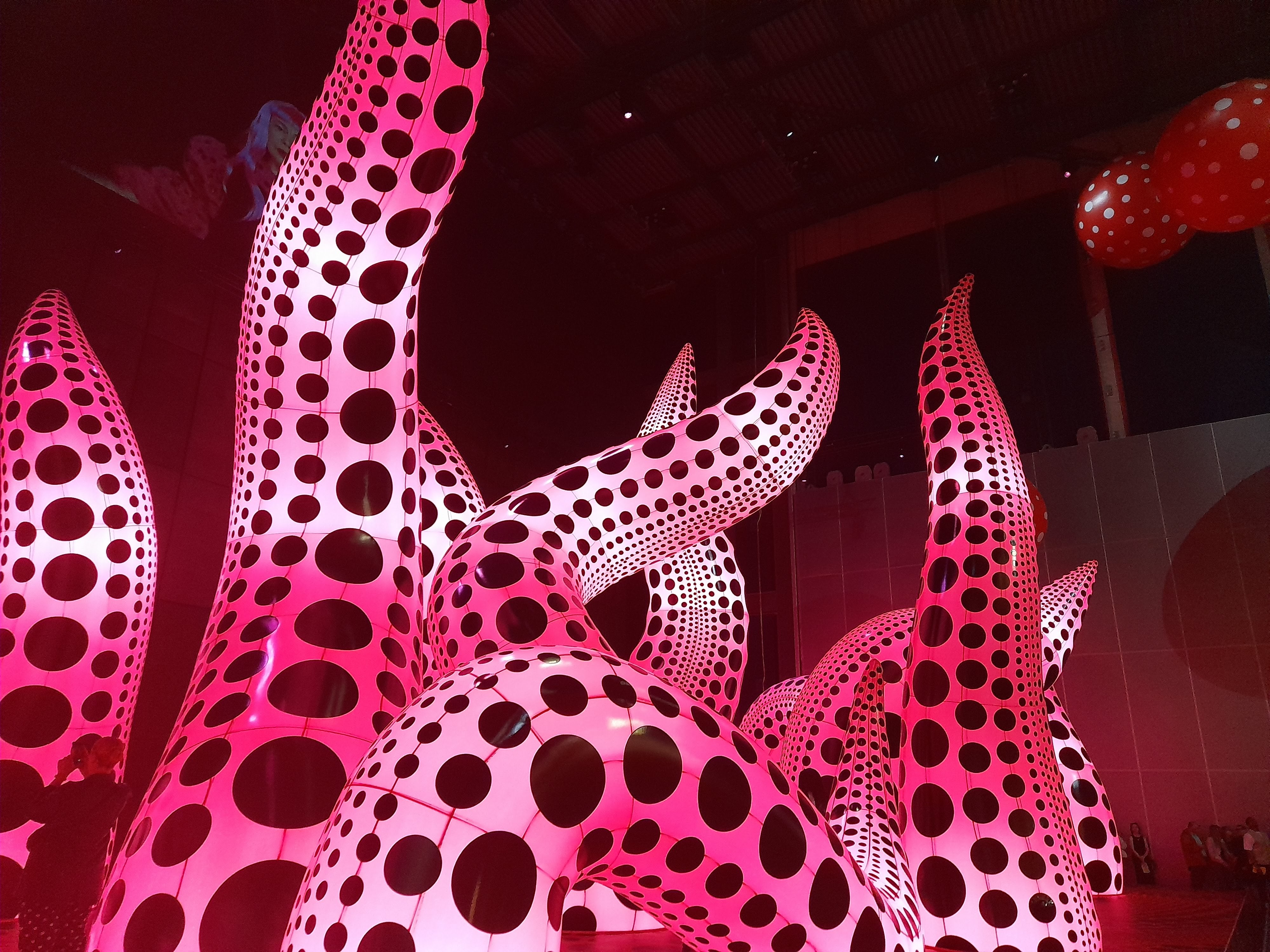 The black/pink tentacles were part of the exhibit called A BOUQUET OF LOVE I SAW IN THE UNIVERSE – strange lighting, interconnected tentacles.