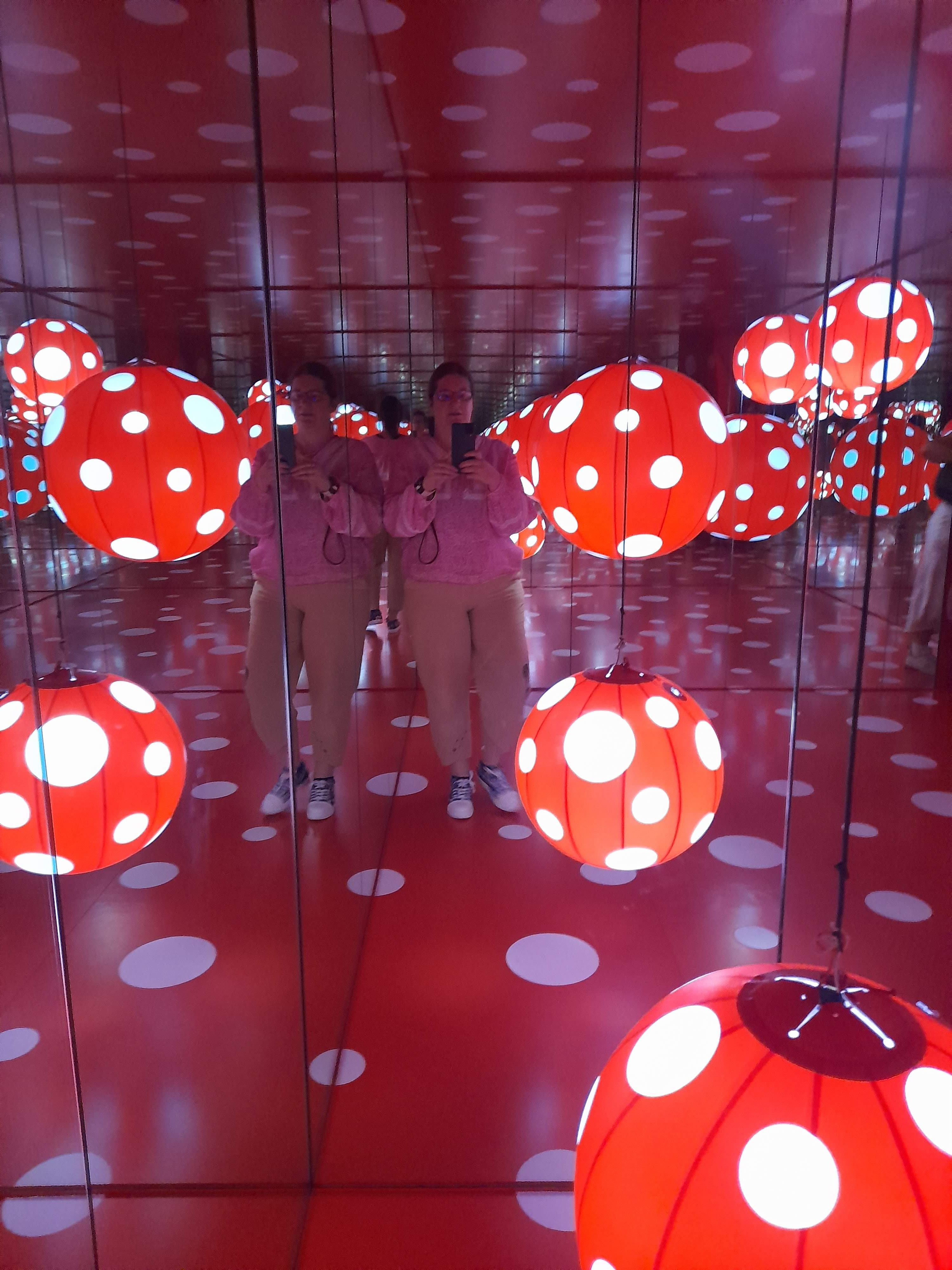 A giant mirror across the hall added a strange perspective – especially when lying on the “cloud” inflatables – part of the immersive experience. Infinite reflections added to the confusion – the first one was viewed from the outside, the second one from the inside.