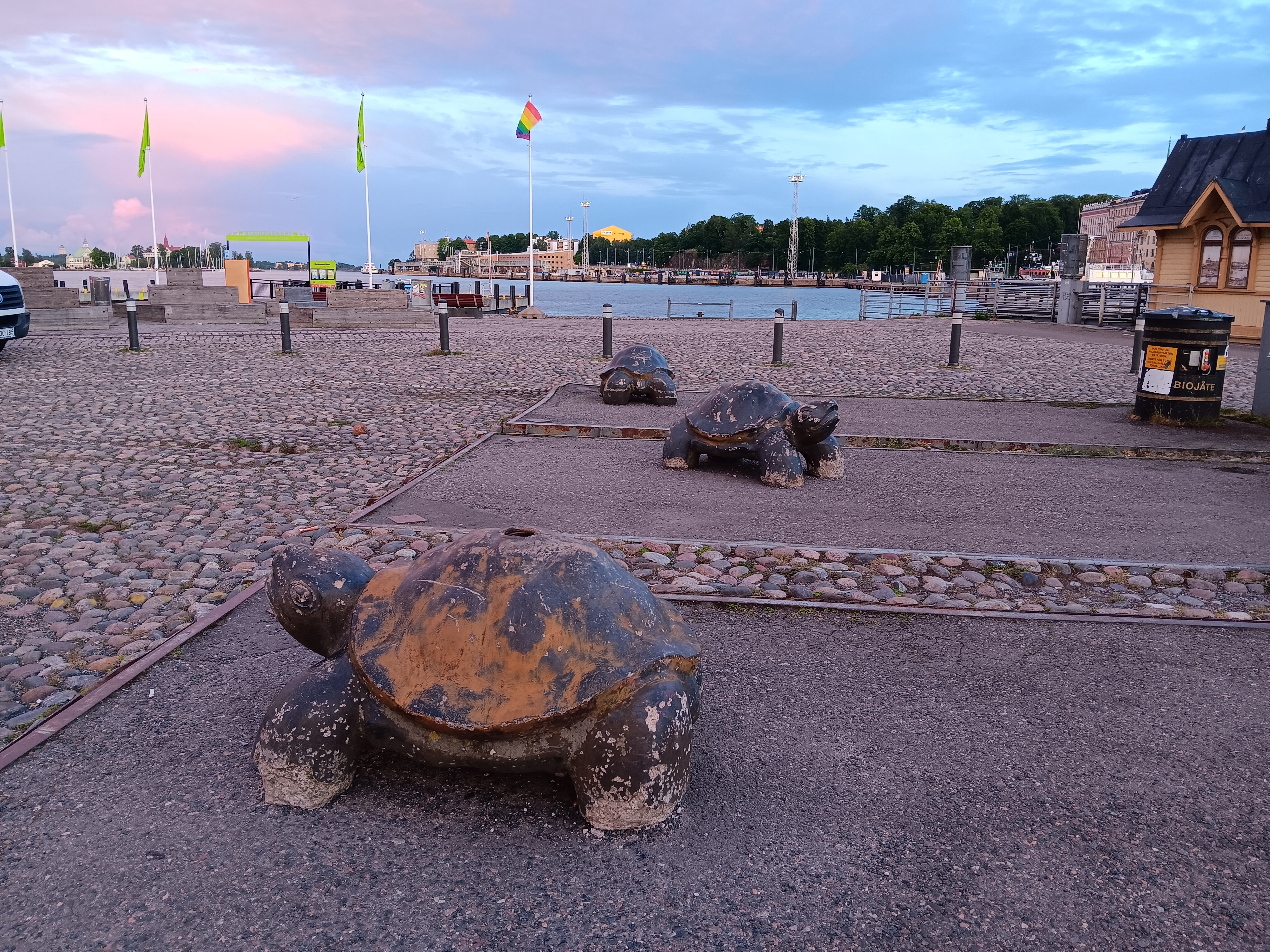 So we checked in to our hotel and then went for a sunset stroll – along Esplanadi, down to the harbour, then back up to Senate Square by the cathedral. Our first experience of the almost-midnight-sun!
