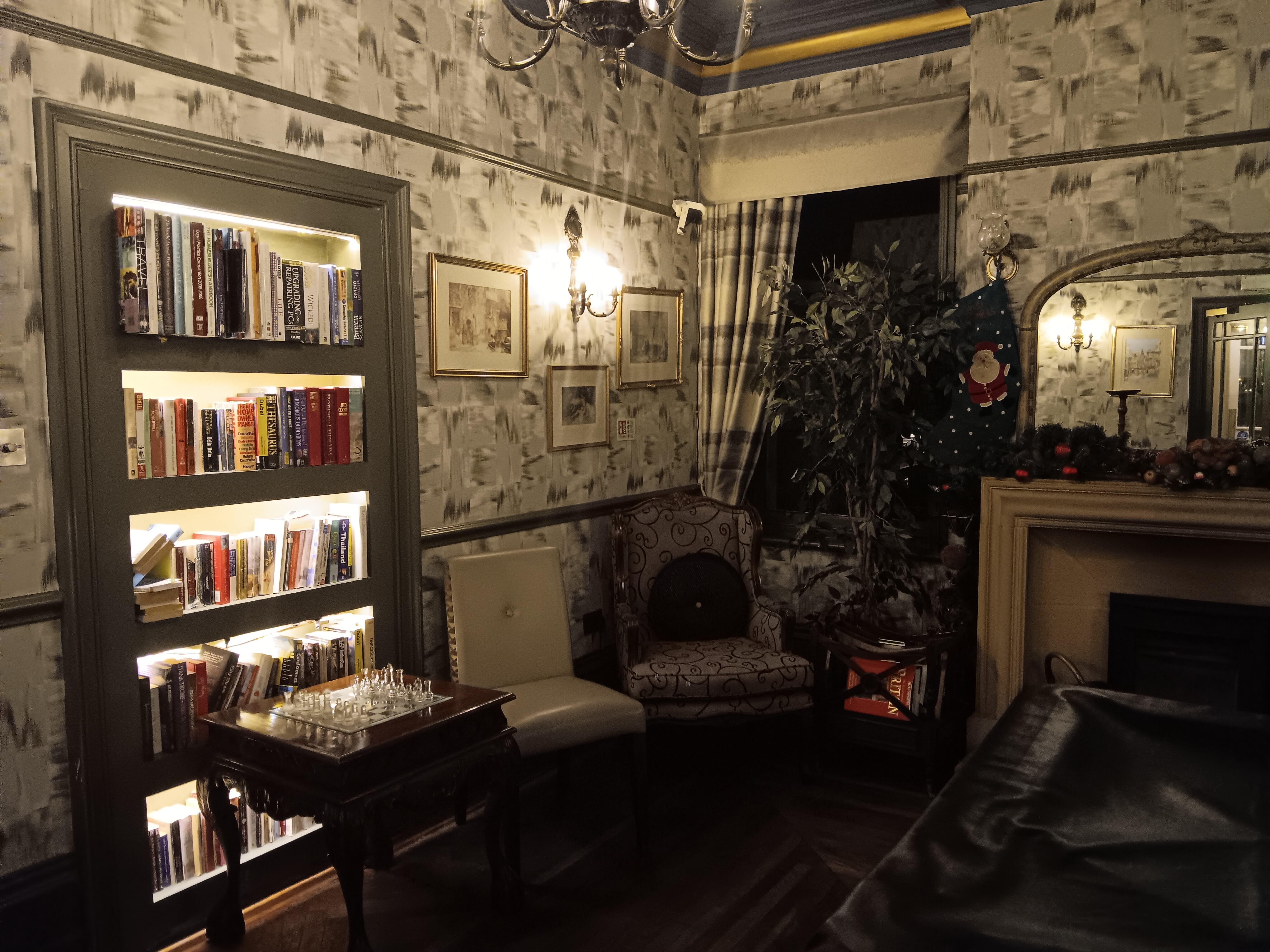 When we arrived on Friday evening, we found a roaring fire, a very cosy library (with a book swap shelf) and everything looking ready for Christmas. It felt slightly out of sync with running an ultra the next day – but the spa bath in our room would be very much appreciated after the race! We ate dinner by the fire and made plans for the next day – Mr T was going to carry of bag of extra supplies I might need and we worked out a few potential meeting points.