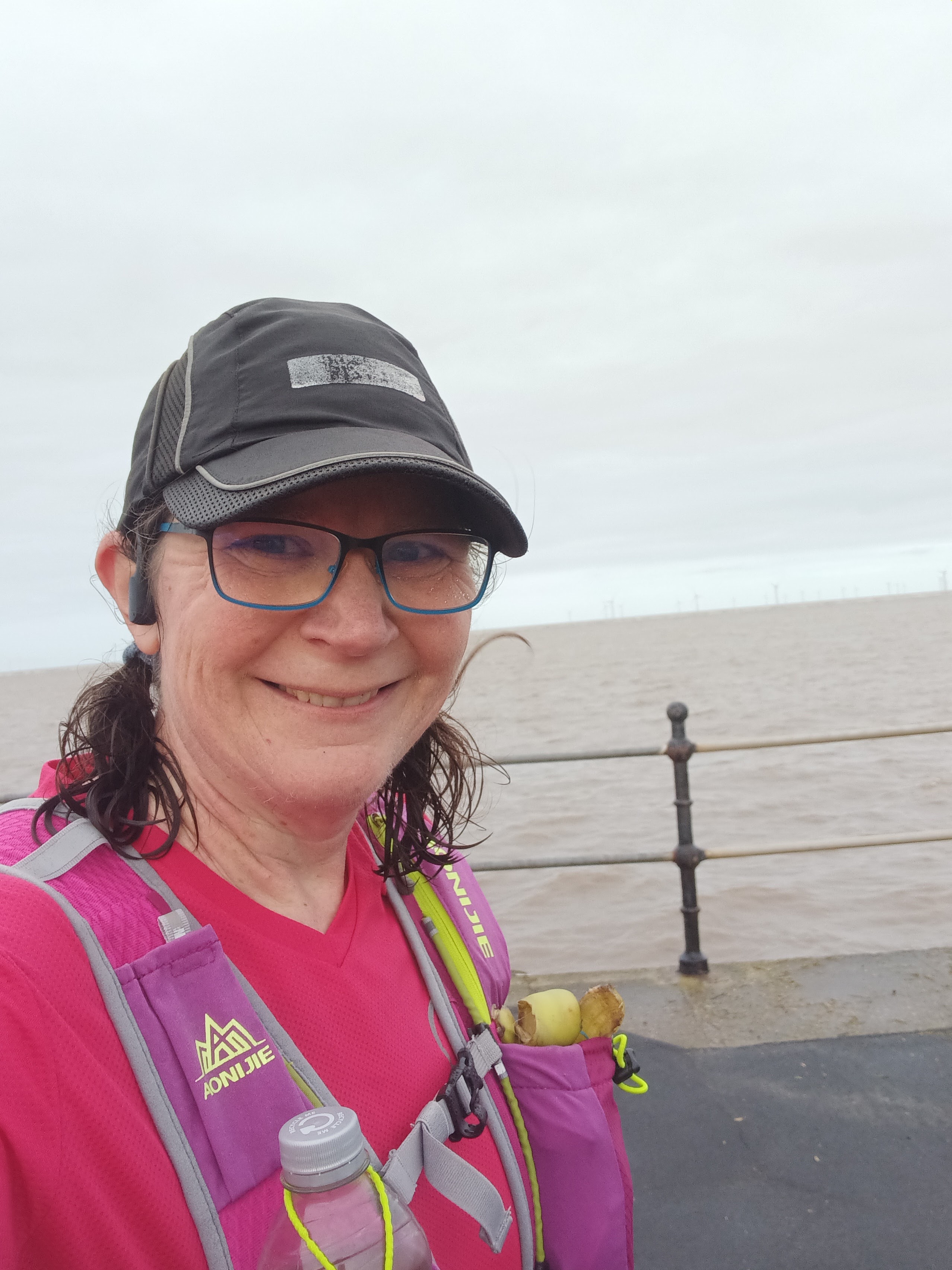 Mr T popped up once more as I passed through Rock Ferry, and I had a big gulp of his salted caramel latte, before plodding on, one foot in front of the other, just keeping going. Mr T would be waiting for me at the finish – just six miles to go now. I remember stopping for a photo – smiling for a selfie to give myself some extra belief. If I had energy to smile, I had energy to keep going.