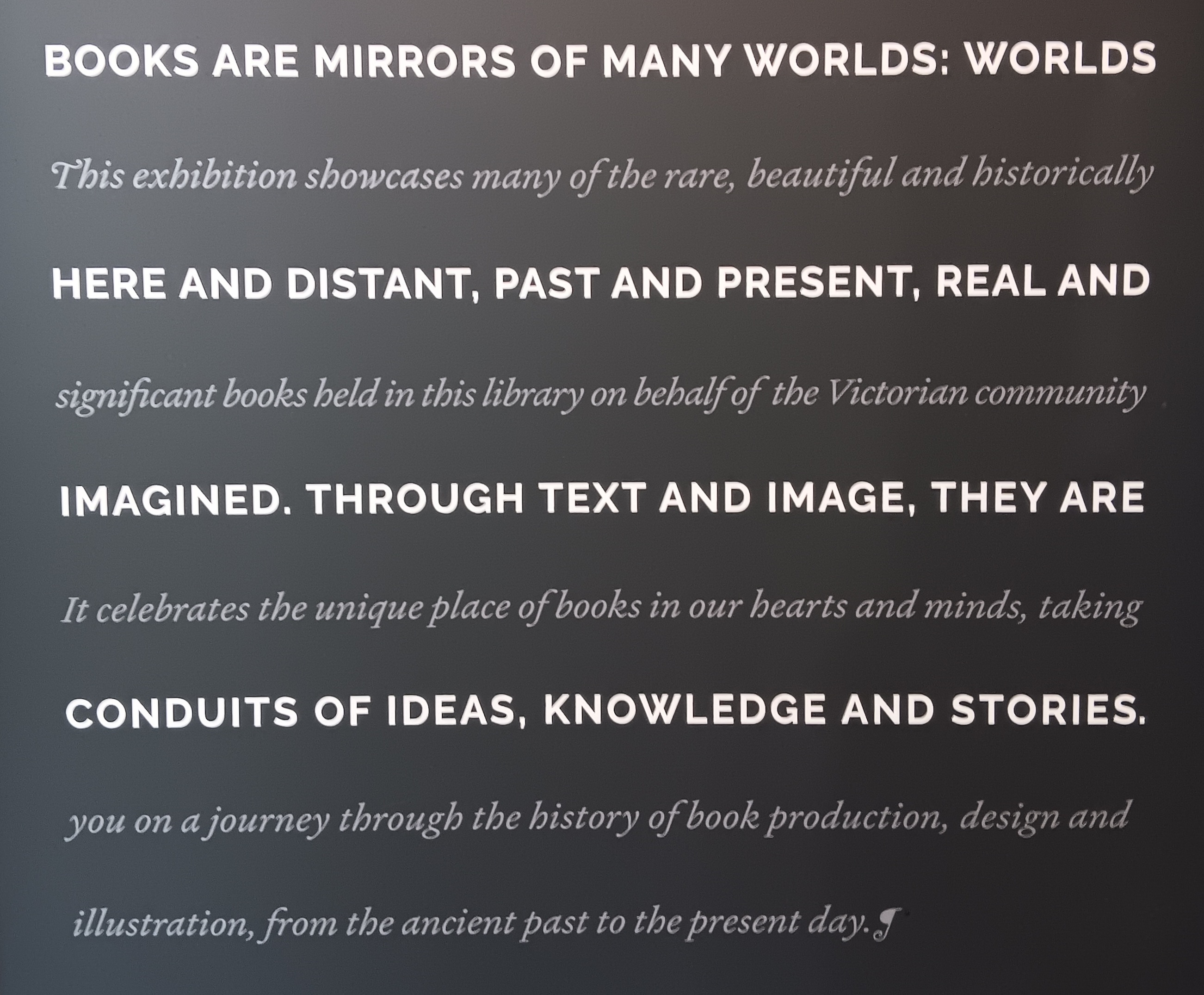 Back down to the fourth floor, we came across an unexpected but brilliant exhibit entitled World of the Book.