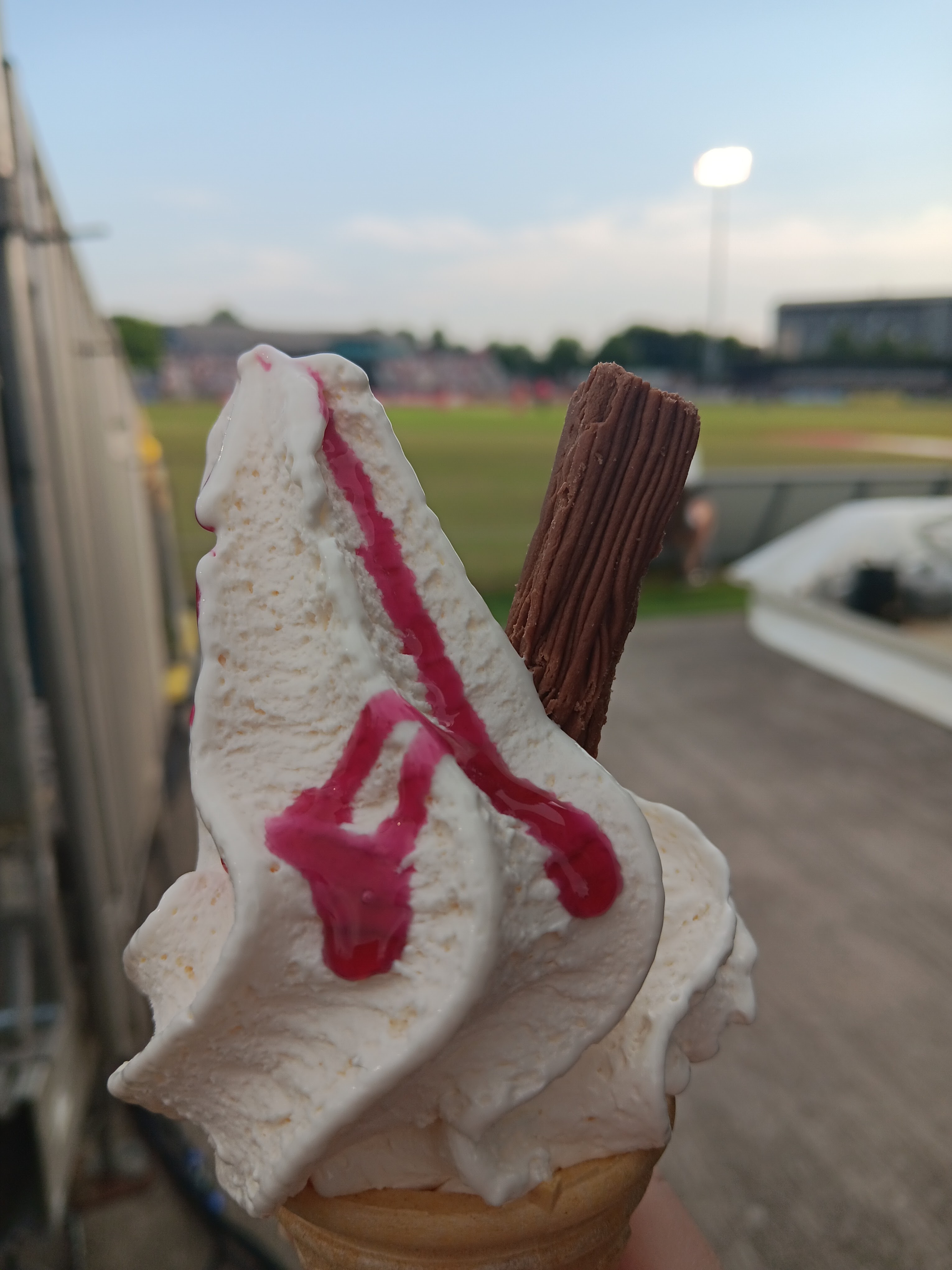 - Ice cream from the ice cream van – with strawberry sauce and a flake obviously