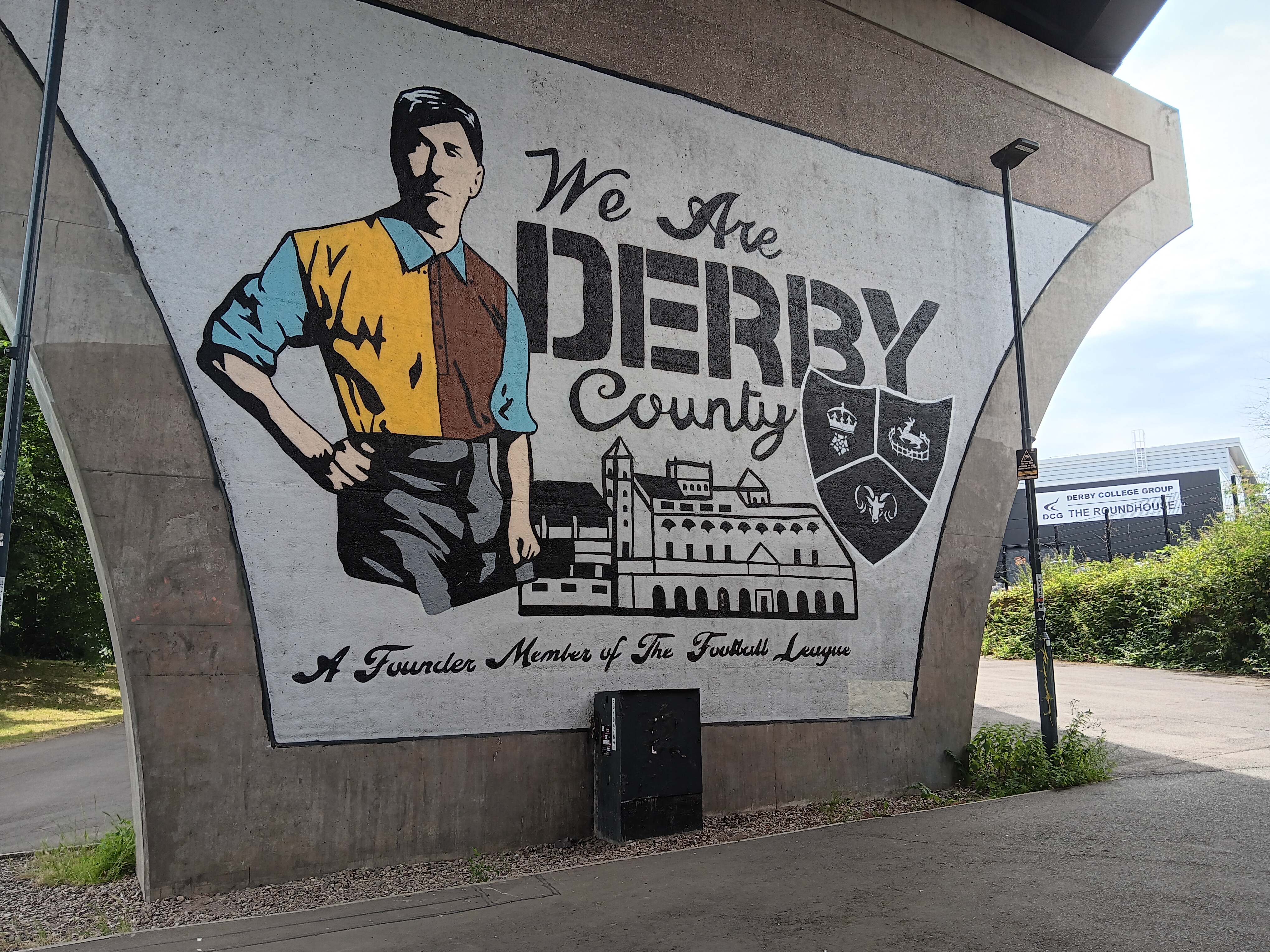 - Finding the Derby County mural – it is under one of the bridges on the riverside path – somewhere near the railway station (possibly). We’d seen it on the way back to the hotel on Friday night – always good to find street art whilst wandering